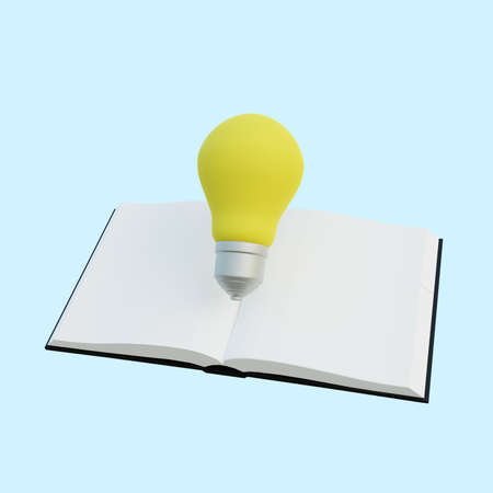 3d illustration simple object book with light bulb