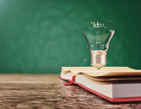 light bulb glowing on book, idea of ​​inspiration from reading, innovation idea concept, Self learning or education knowledge and business studying concept.