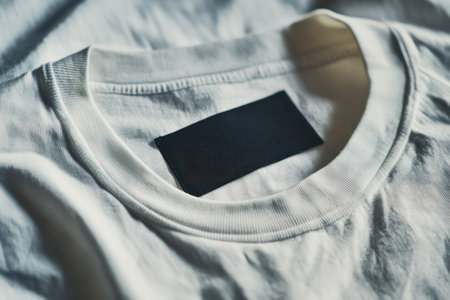 Blank tag on tshirt, closeup view. Space for text