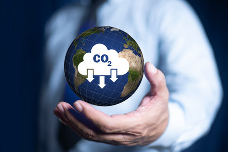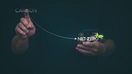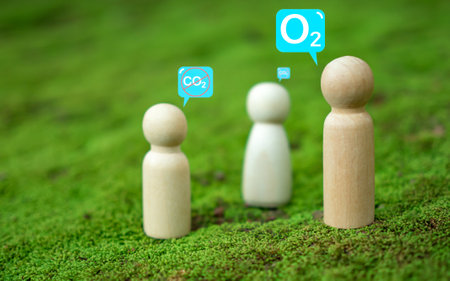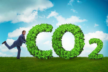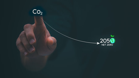 Carbon Dioxide Reduction To solve the global climate crisis and reduce global warming. Concept of reducing carbon dioxide emissions to zero for the goal of reducing greenhouse gas emissions in 2050