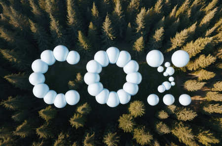 Bubbles with “CO2†over green trees. Environmental message, aerial view.