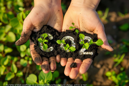 CO2 emission reduction concept, clean and friendly environment without carbon dioxide emissions. Planting trees to reduce CO2 emissions, environmental protection concept.