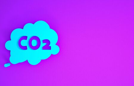 Blue CO2 emissions in cloud icon isolated on purple background. Carbon dioxide formula symbol, smog pollution concept, environment concept. Minimalism concept. 3d illustration 3D render