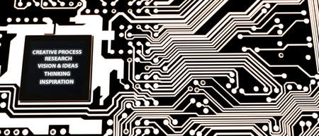 printed circuit. layout of tracks. PCB. processor, chip and electronic components