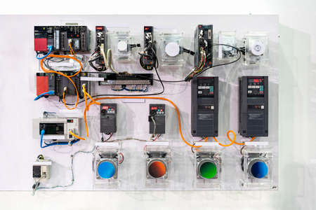 advance technology automatic Programmable Logic Controller PLC and many of high precision and accuracy equipment circuit connection diagram for system control in industrial work on wall