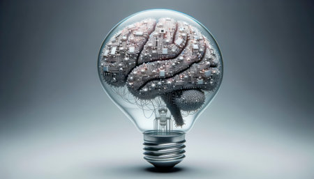 Futuristic light bulb with animated brain inside, representing digital innovation generative ai