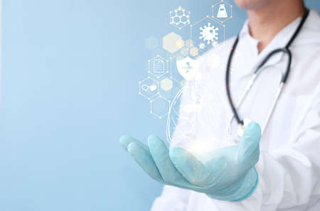 Modern medical technology concept.smart doctor and VR diagram.