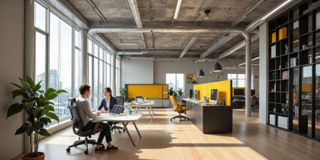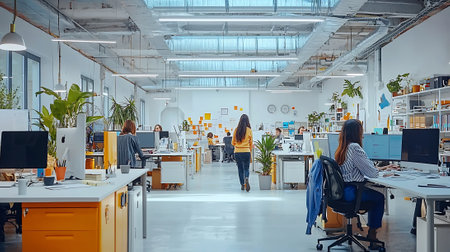Vibrant office space with creative team at work