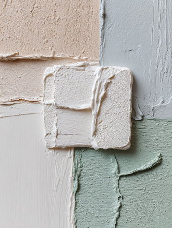 Soft pastel colors in various textures are arranged creatively, showing a harmonious blend of shades on a canvas, emphasizing artistic expression.