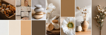 Holistic Wellness Moodboard: Yoga, Skincare, and Tranquil Outdoor Scenes in Natural Tones