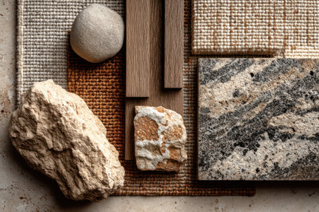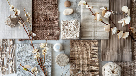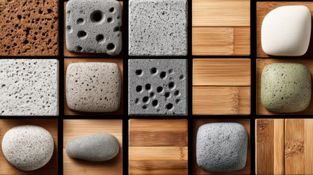 A captivating display of various textures and materials, showcasing the beauty of nature and design. This arrangement serves as inspiration for artistic projects and interior decor.