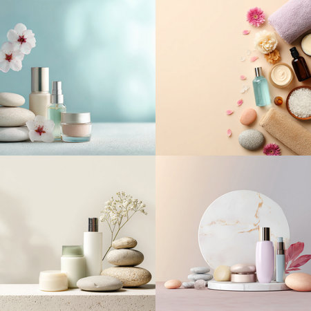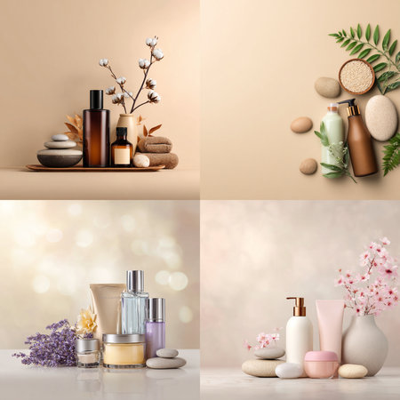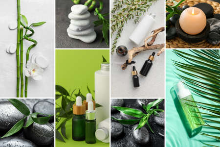 Collage with natural cosmetics and spa stones