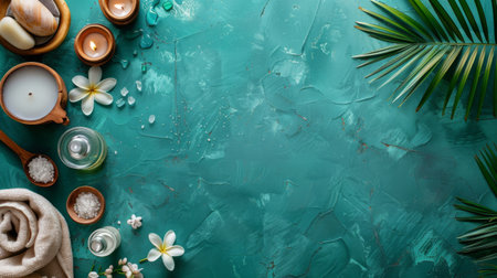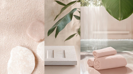 A background featuring a spa ambiance with the incorporation of palm leaves and grey stones, as seen