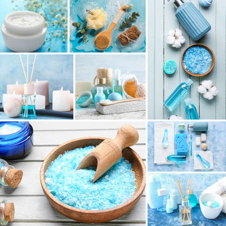 Beautiful spa collage in blue colors