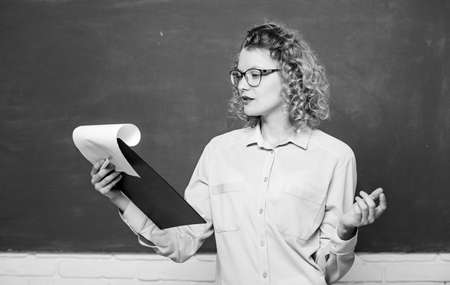 make a report. girl teacher at private lesson. next school year. Girl prepare for exams. essay writing. teacher with document folder. report project. back to school. student in glasses at blackboard