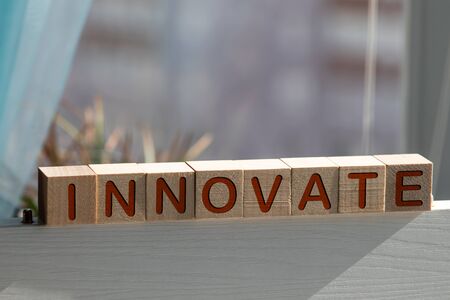 innovation creative concept. Lettering from yellow cubes.