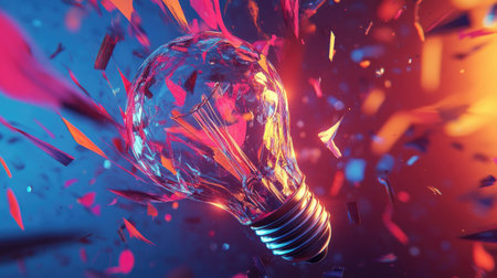 A captivating image of a light bulb bursting into colorful shards, symbolizing creativity and inspiration. The vibrant background enhances the dynamic feel.