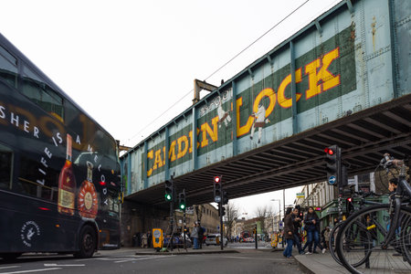 London, UK - 2nd of April, 2017: Camden Lock Bridge which is a famous alternative culture shops in Camden Town, London, its markets are visited by more than 5 million people every year