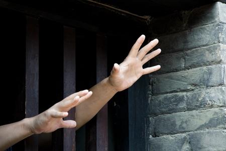 hand waits for freedom, concept of prison in the jail inside and outside world.