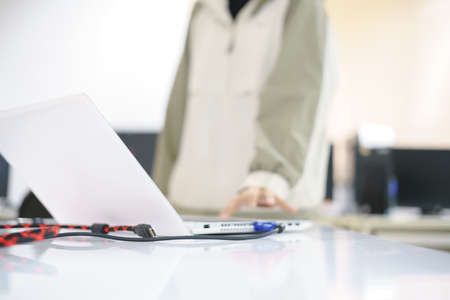 A multimedia presentation in a meeting or classroom by connect computer with projector