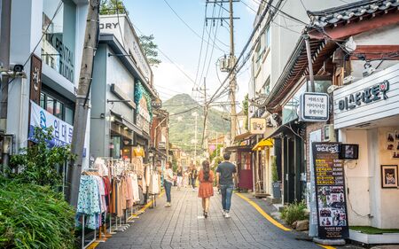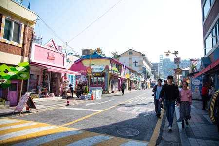 Busan, Korea - September 23, 2018 : Haeundae beach restaurant street