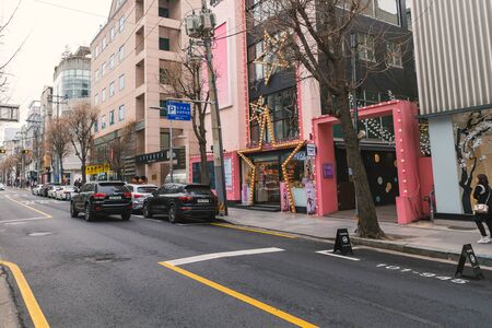 SEOUL, SOUTH KOREA - MARCH, 2019: Famous Garosu-gil area streets in Gangnam, Seoul