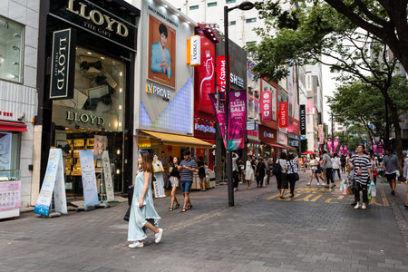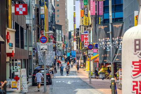 Seoul; Korea - august 4 2024: the Myeongdong district