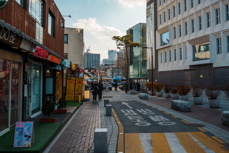 Daegu, Korea - April 2, 2019 : Dongseong-ro shopping street