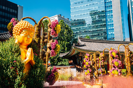 Jogyesa Temple with colorful flowers in Seoul, Korea
