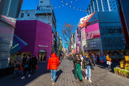 Seoul, South Korea 10 December 2018 : Myeong dong market is the popular place and district for shopping find something eat and sightseeing