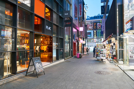 SEOUL,SOUTH KOREA - MARCH 29, 2018: Empty street near Hoehyeon Station in Seoul on 29 March 2018 in winter