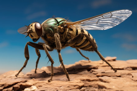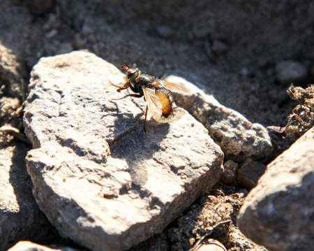 Housefly close up Macro shot. The housefly is a fly of the suborder Cyclorrhapha, and has spread all over the world as a commensal of humans. It is the most common fly species found in houses