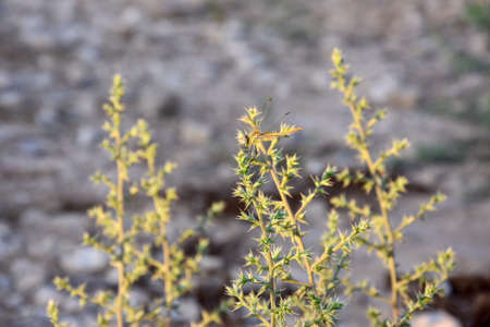 Desert Beetle on Dry Stems with Warm Light and Natural Texture Close Up