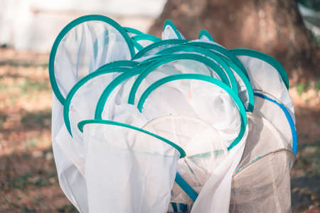 Mosquito lamp at work for the extermination of insects on cafe terraces. Background with selective focus and blurred background