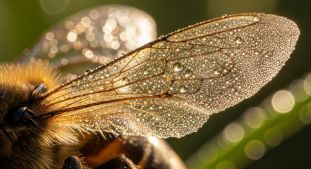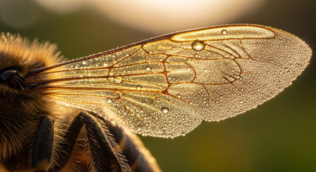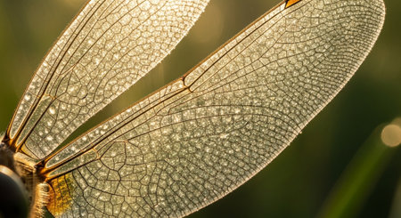 A stunning close-up shot showing the intricate details of an insect's wing. The golden light accentuates its beauty.