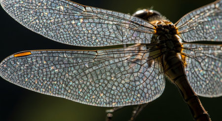 Close-up of a dragonfly revealing intricate wing veins and body details, showcasing the beauty of nature's design, macro photography and don't have generated by AI.