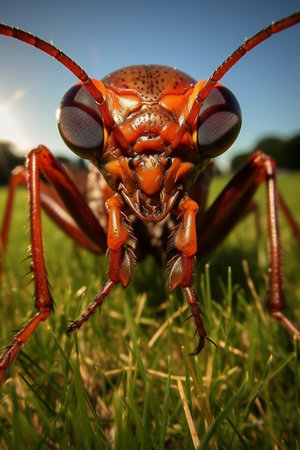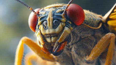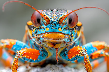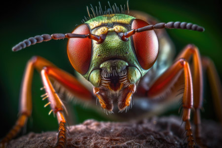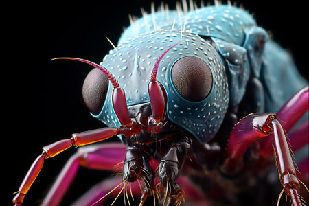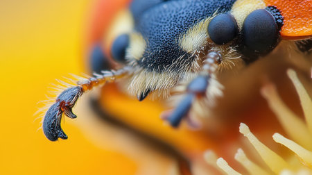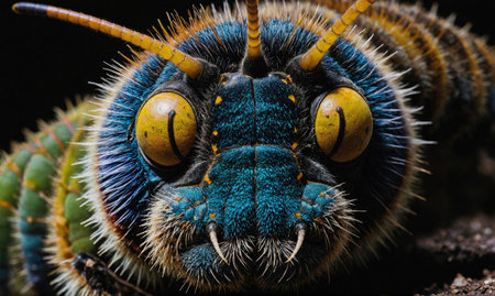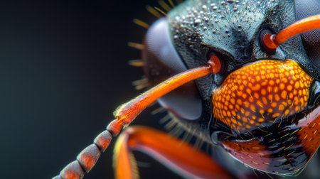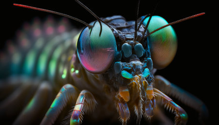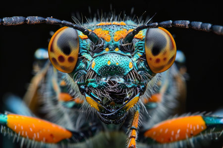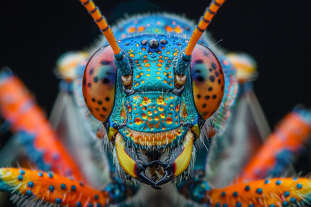 Close up of a vibrant insect showcasing intricate details, vivid colors, and captivating textures ideal for nature and science illustrations