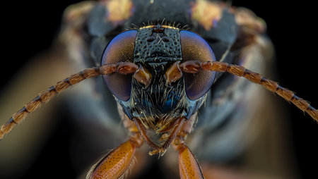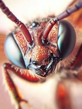 close-up of tarantula hawk wasp eyes and antennae, created with generative ai
