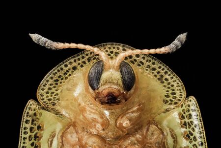 Gratiana pallidula beetle Macro, Closeup of face head of insect