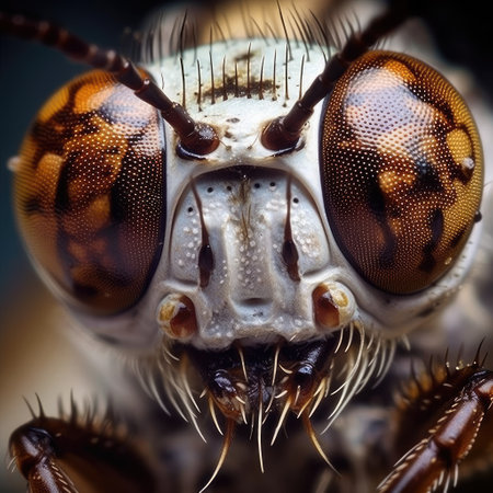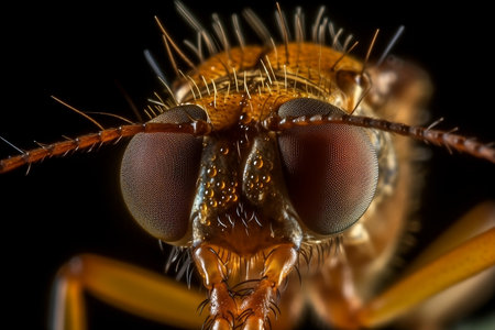 Spooky housefly with hairy legs and yellow eyes in focus generated by artificial intelligence