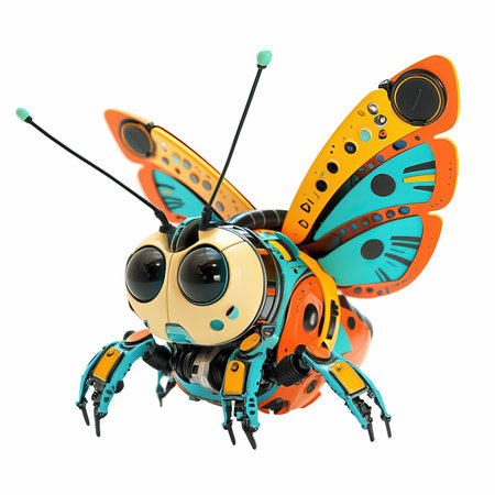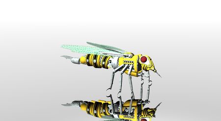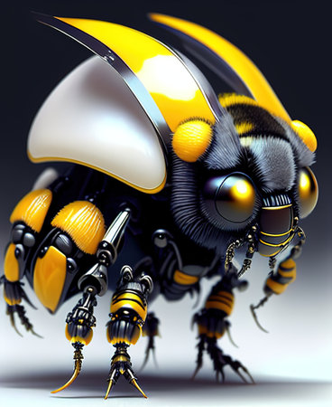 3D render of flying honey bee robot, CG artwork design concept