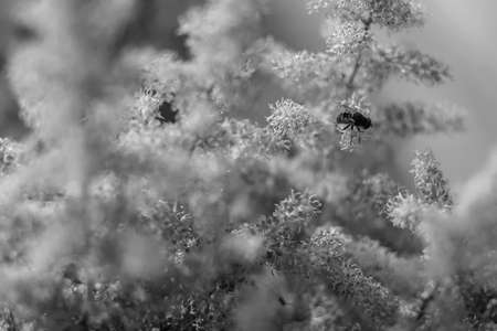 A flower in macro photography. Creative. Insects with large moustache sit on a small white flower