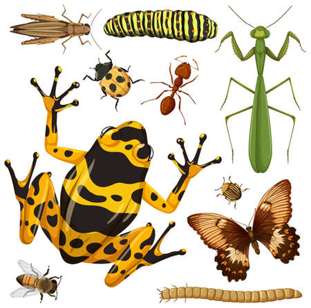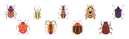 Insect Bugs and Beetle with Antenna and Multiple Legs Vector Set