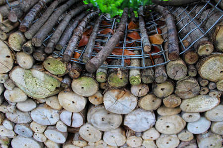 Shelter for insects made with natural materials in the city park.