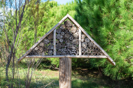 Insect house in the countryside, nature reserve, ecosystem protection