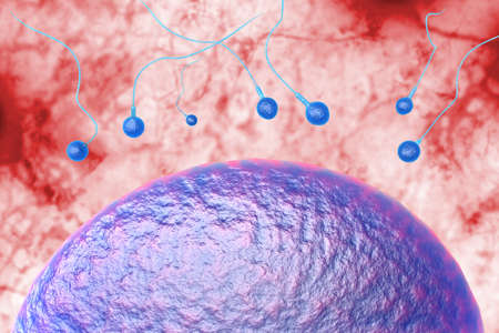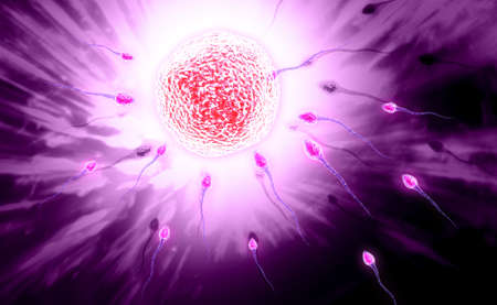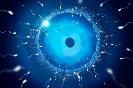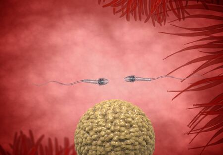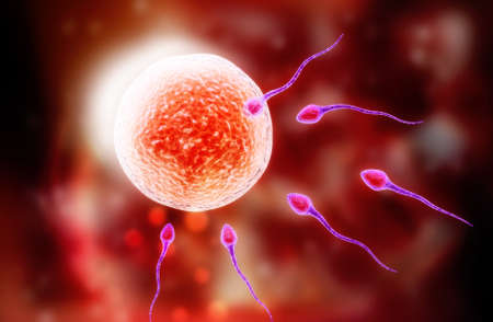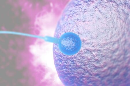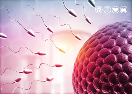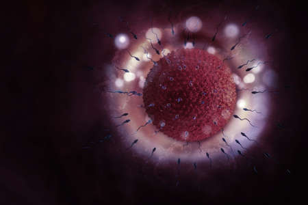 Fertilization of an ovum with a sperm. Concept of medicine, science and research. Abstract illustration