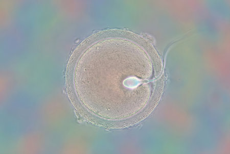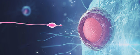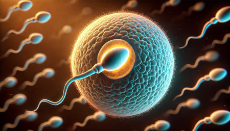 Sperm fertilizing an egg cell, representing the beginning of human life and key concepts in fertility treatment, reproductive medicine, and biological conception under a microscope