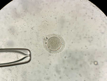 Ovum with needle and sperm for artificial insemination. Concept of artificial insemination or fertility treatment. Close-up