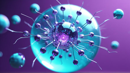 Futuristic virus structure with abstract molecular design in vibrant colors.