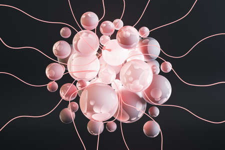 Abstract pink microbe or neurons on dark background. Medicine and biology concept. 3D Rendering